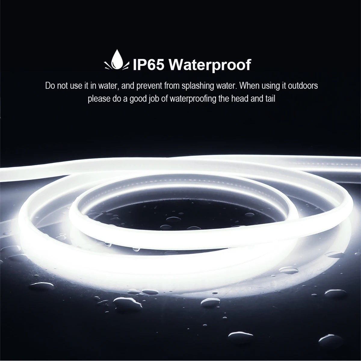 High-density COB (Chip-On-Board) LED technology with waterproof silicone coating and durable flexible PCB.