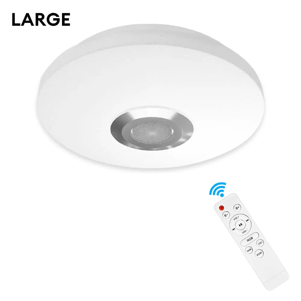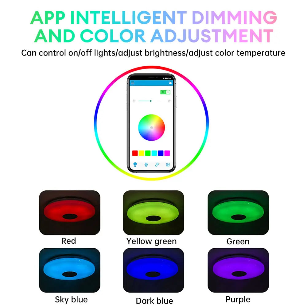 Transform your room into an immersive sound and light experience with this 60W Smart RGB Ceiling Light — featuring a built-in Bluetooth speaker, colorful ambient lighting, and full smart control via app and remote.